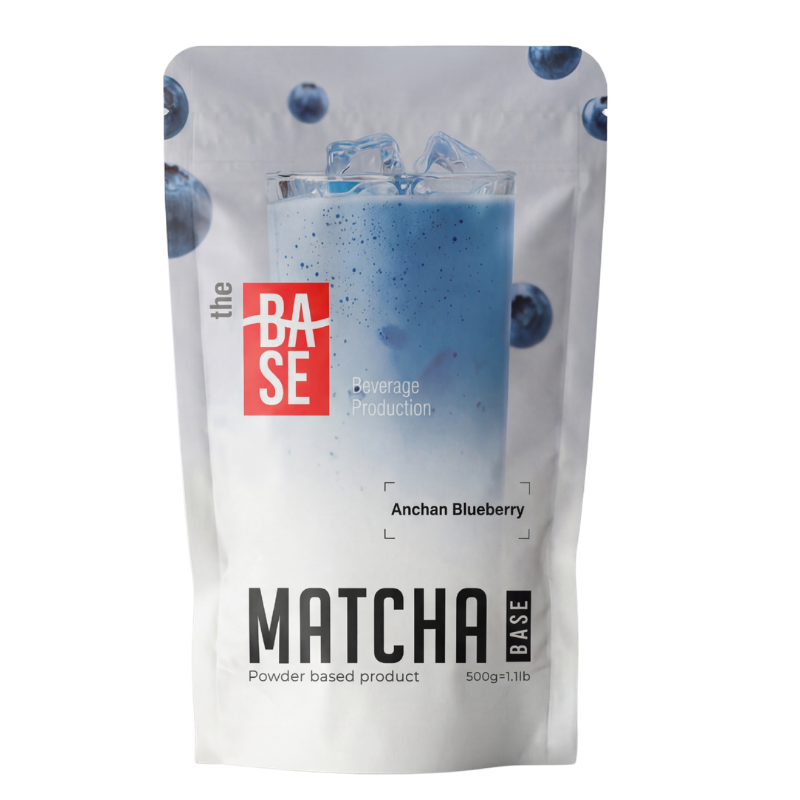 The Base Anchan Blueberry Matcha is a unique blend combining matcha with anchan (butterfly pea) and blueberry, offering a smooth taste with fruity and floral notes.